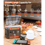 • More Powerful In Less Weight : 299Wh/80818mAh portable power station weights only 7lb, powerful enough to charge smartphones (2000mah) 40 times, laptops (56wh) 4-5 times, mini fridge(45W) about 6-18 hours, CPAP 2-4 nights(using DC converter). Ideal for camping, home emergency, travel, fishing, van life.